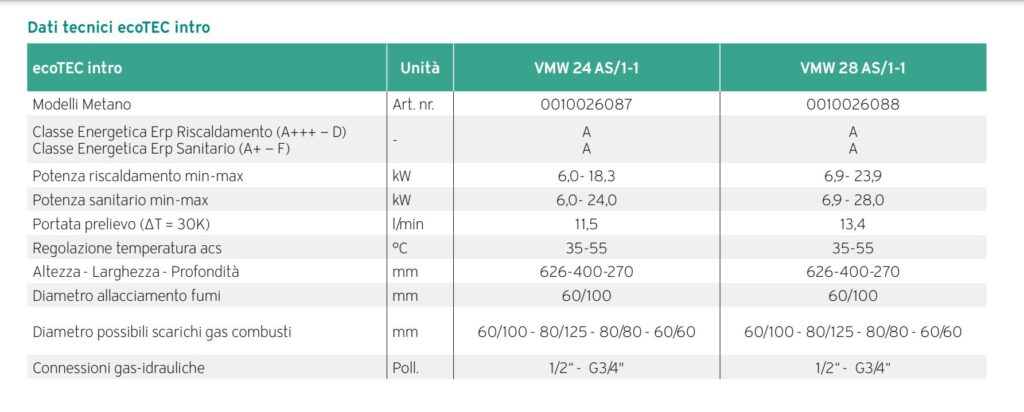 Vaillant Caldaia Ecotec Intro Vmw 18/24 As/1-1 (H-It) Pot. 18Kw – -“OMAGGIO VRT 380” – NEW 2025!